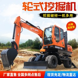• 輪式挖掘機150型土方工程勾機建筑工地農用小型挖掘機13 5輪式挖機
